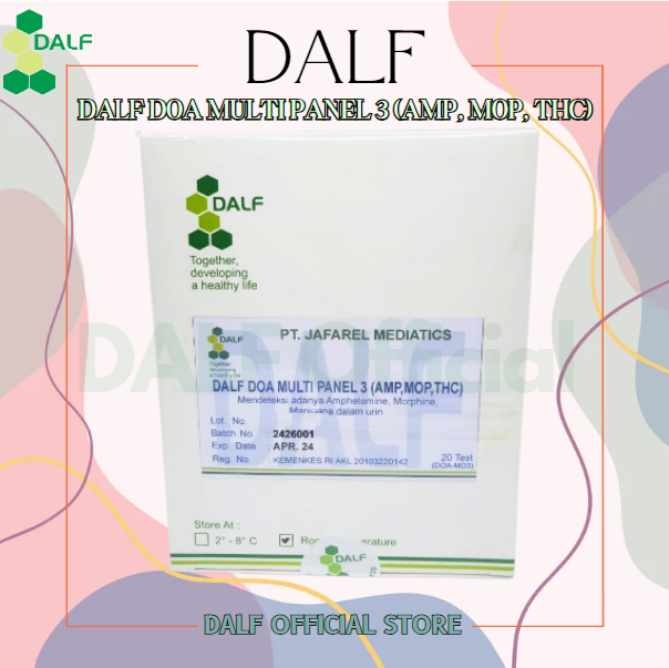 DALF DOA Multi Panel 3 adalah tes cepat untuk mendeteksi kualitatif simultan dari beberapa obat dan metabolit obat dalam urin manusia. Untuk digunakan oleh profesional kesehatan termasuk profesional di tempat perawatan. Immunoassay hanya untuk penggunaan diagnostik in vitro..