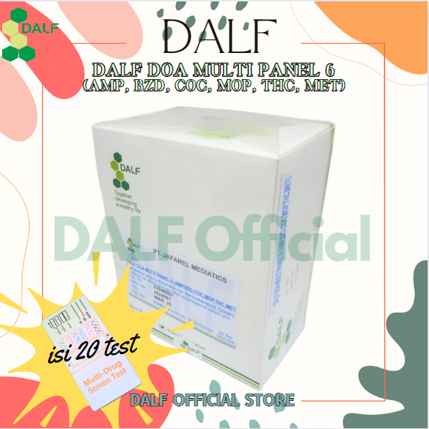 DALF DOA Multi Panel 6 adalah tes cepat untuk mendeteksi kualitatif simultan dari beberapa obat dan metabolit obat dalam urin manusia. Untuk digunakan oleh profesional kesehatan termasuk profesional di tempat perawatan. Immunoassay hanya untuk penggunaan diagnostik in vitro.